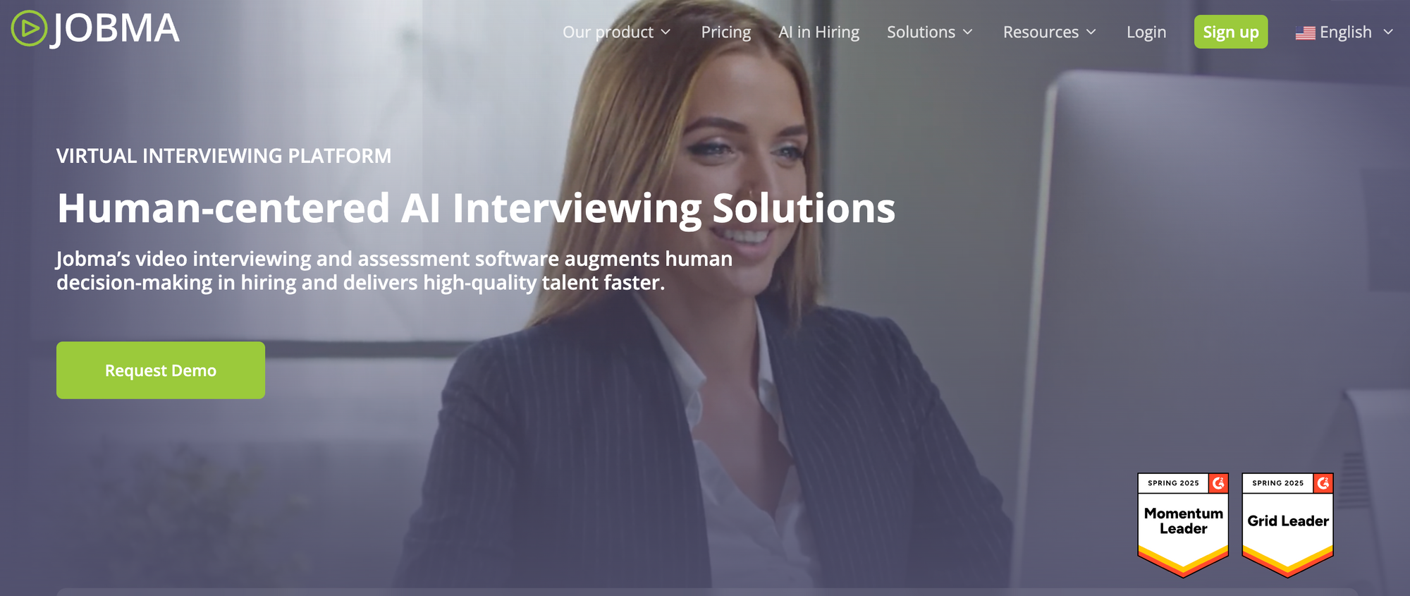 Jobma offers affordable video interviewing software, tailored for large organizations but also accessible for small businesses. A key feature of the platform is its multilingual support which ensures a wider reach for global hiring efforts.