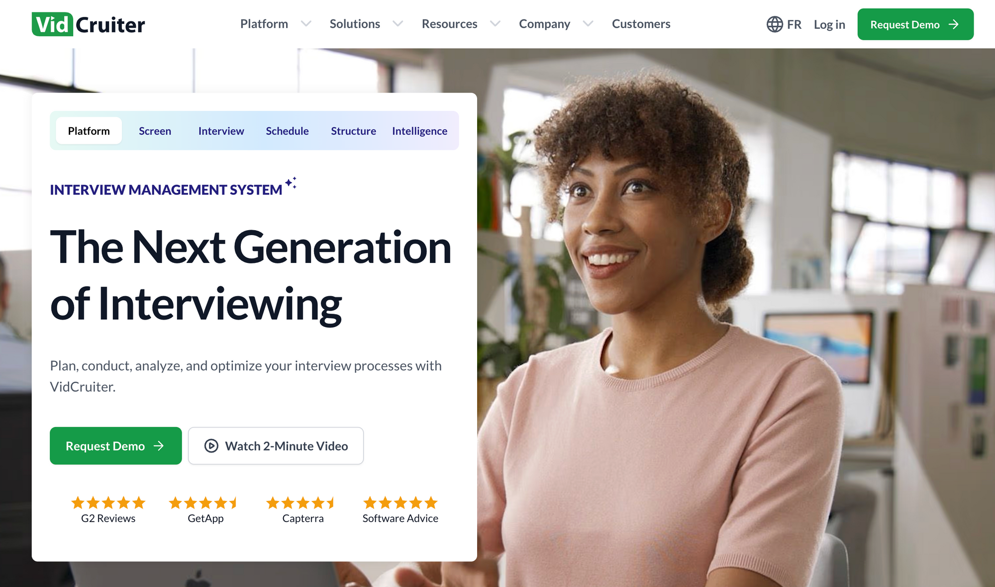 VidCruiter is a more enterprise-oriented video interview platform designed for organizations with more complex hiring programs. It is commonly used by teams that need both async and live video interview workflows, along with more structured processes across roles, regions, or departments.