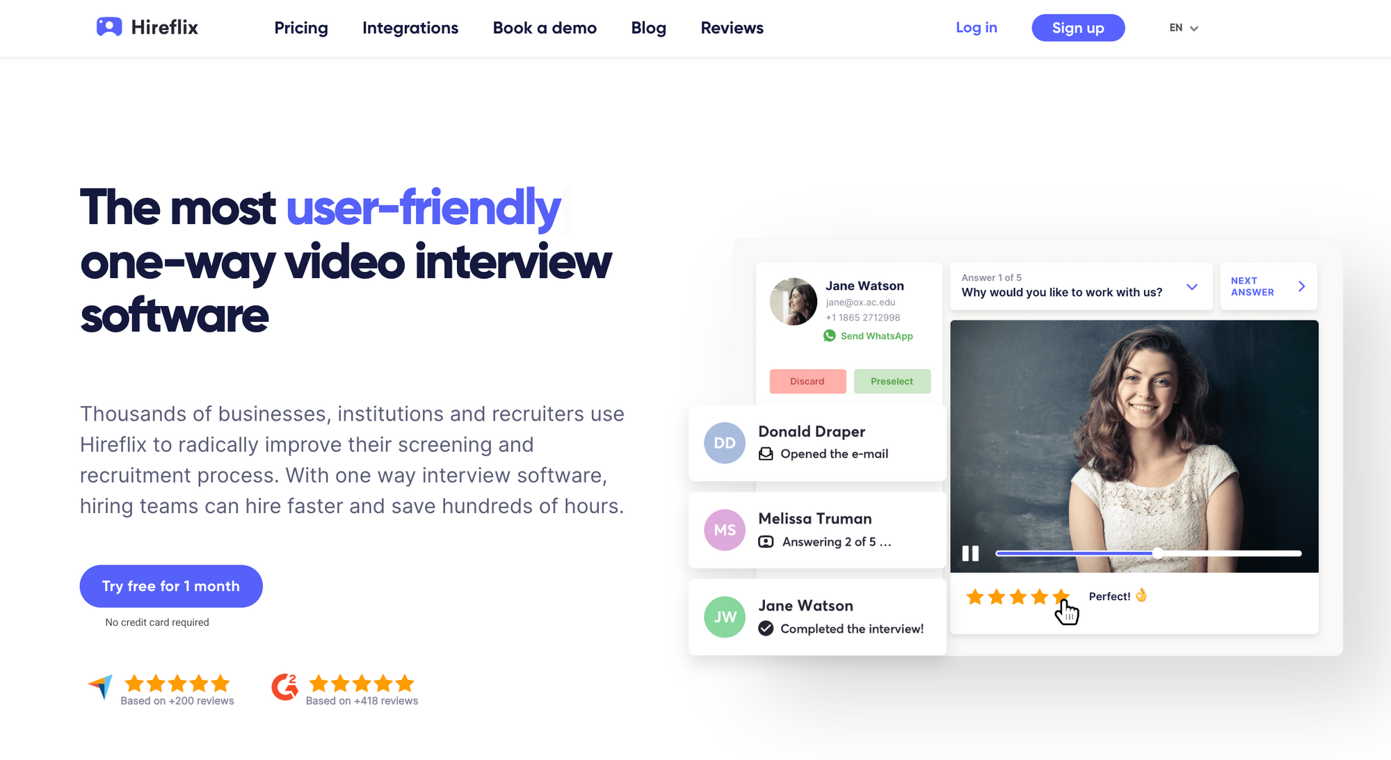 - One-way and live video interview options